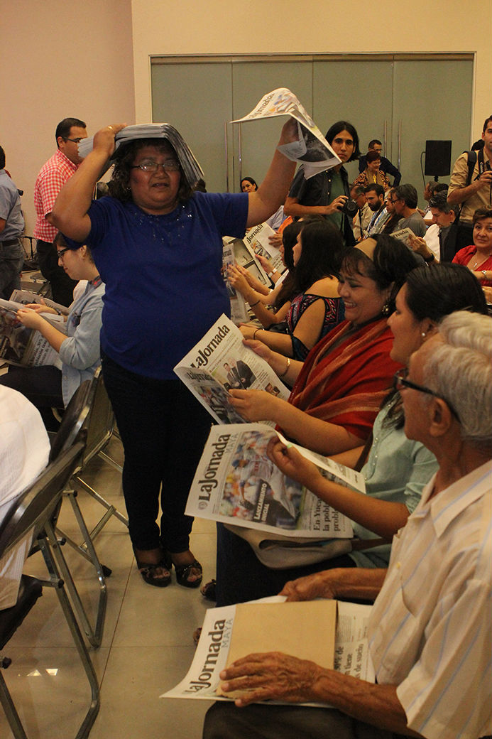 Yo, Fabrizio León, soy solamente un emisario. De parte de la Directora de La Jornada nacional, la señora Carmen Lira, quiero extenderles la más sincera gratitud por recibirnos. Venimos, en medio del caos nacional, a pedir refugio. En nombre de los que hacen La Jornada en la Ciudad de México, Josetxo Zaldúa, Elena Gallegos, Luis Hernández, Hugo Gutiérrez Vega, Luis Linares, en nombre de todos los lectores y protagonistas de este periódico, doy las gracias, por permitirnos realizar en la Península de Yucatán este nuevo proyecto de expresión social.