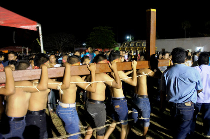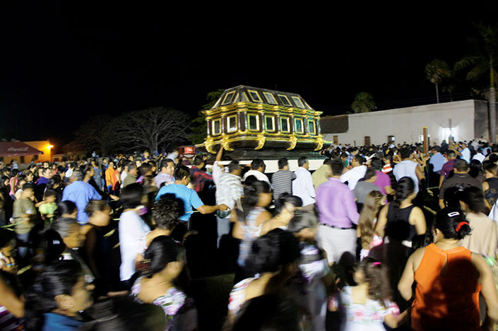 Una luna enorme, casi llena, alumbra el atrio del convento de San Miguel Arcángel de Maní. El edificio, construido por los franciscanos, sigue siendo el corazón de esta población yucateca. Es noche de Viernes Santo y el convento luce bonito, iluminado y repleto de flores amarillas y blancas diseminadas por doquier. Una figura de Jesucristo crucificado preside, inerte, el altar. Solamente en estas fechas es movida de su lugar habitual para que los fieles la puedan besar, se puedan encomendar y le puedan dar ofrendas con hojas de ruda en la mano. Hay algunos fieles rezando o charlando animadamente en las bancas, pero esta noche la tradición pide estar afuera, en la capilla mayor, donde otrora se realizaban las misas para la población indígena en tiempos de la Conquista Española que hoy, como en tantas otras manifestaciones religiosas de la región, está muy presente. Durante toda la jornada Maní se ha volcado, como cada año, en el recuerdo del sufrimiento que vivió Jesucristo antes de morir. En la mañana, y bajo un sol demoledor, se realizó el Vía Crucis, la ceremonia de las 7 palabras y los oficios pertinentes. Ya de noche, un halo de espiritualidad recorre las calles y es el momento de la contención y del respeto. Inicia el rosario del pésame. Hay quietud y una sensación liviana de tristeza. La noche del sábado de esta Semana Mayor todo será distinto. En la medianoche, se liberarán palomas y globos, se explotarán voladores y se festejará la resurrección del Mesías.